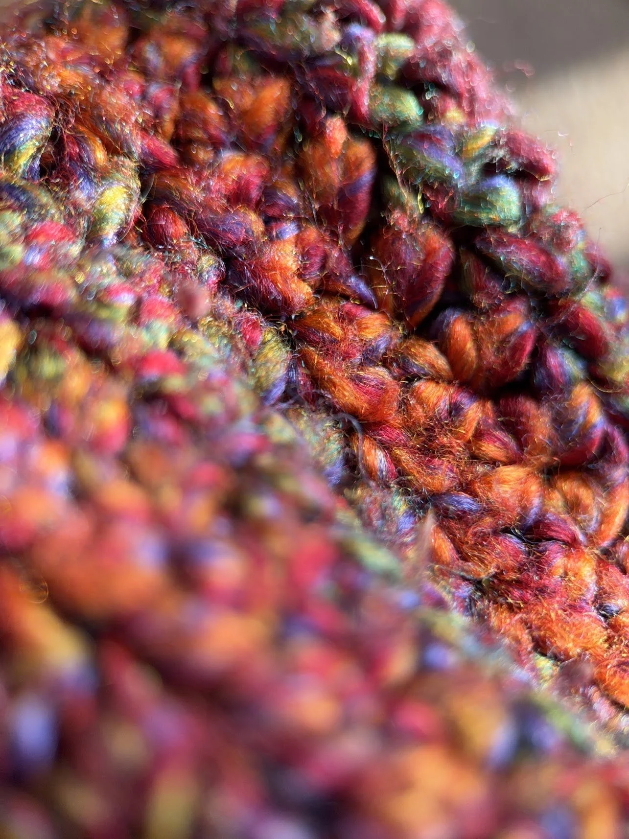 Another gift I received from Tina was a speciality macro lens for my iPhone (one of my nerdy photog interests). Tina has a prayer blanket that was knit for her by a close friend that was meant to not only warm her, which it does incredibly well, but to also remind her that she is enclosed in the prayers of a deeply connected friend. I used my new macro lens to capture a “close-up” of the details of that weave. It’s amazing what we don’t see until magnified. The many differently textured and colored threads tightly interwoven - and this by the hands of someone extremely skillful, with deeply loving intent.